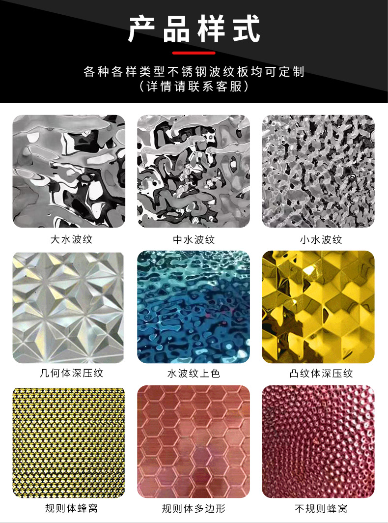 表面:拉丝、镜面、喷砂、镀钛、蚀刻、抗指纹